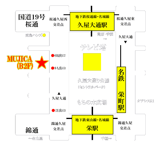 名古屋市営地下鉄「東山線・名城線」の栄駅3番出口より徒歩2分